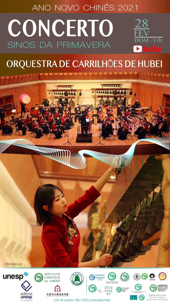 Comemorando o ano novo chinês, a Orchestra de Carrilhões de Hubei se apresentou no canal do youtube do Instituto Confúcio - UNESP, no dia 28 de fevereiro de 2021 as 11horas.