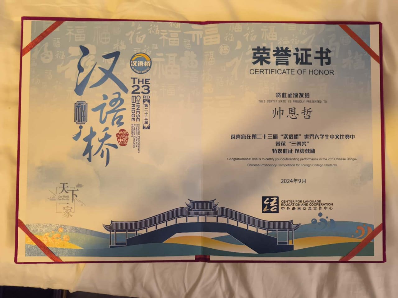 O Instituto Confúcio da UFMG tem o imenso orgulho de parabenizar nosso aluno Etel Bitencourt pela conquista do terceiro lugar na Competição Mundial Chinese Bridge, nível universitário, edição de 2024! Sua dedicação e talento são uma inspiração para todos nós. Parabéns, Etel, por levar o nome da UFMG ao mundo e por essa vitória incrível!